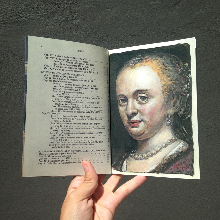 Para qué sirven las personas? es un archivo visual íntimo del pintor y dibujante Panchopepe. A lo largo de tres años, el artista transformó un ejemplar encontrado del Código Procesal Civil y Comercial de la Nación —rescatado de la calle— en un cuaderno de bocetos personal. En sus 600 páginas impresas conviven lenguaje e imaginería legales, creando un diálogo sutil y humorístico entre texto y pintura. En conjunto, estas obras forman un extenso catálogo que refleja el ingenio, la sensibilidad y la inagotable energía creativa del artista.